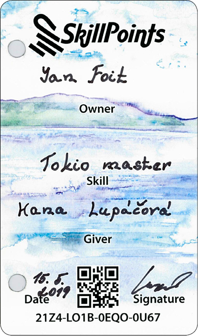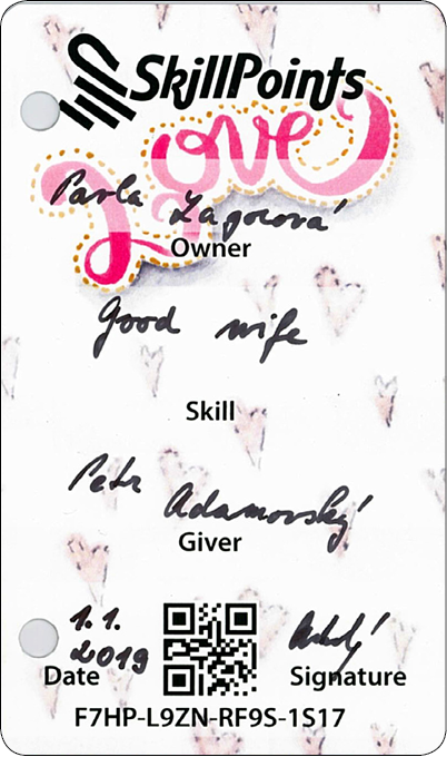 Die Karten werden aus speziellem Material hergestellt, das man nicht anfeuchten oder zerreißen kann. Du kannst diese auf dem Web oder mithilfe der mobilen Applikation SkillApp registrieren. Dank dessen erhältst Du einen Überblick über alle Karten, die Du verschenkt oder erhalten hast. In der Applikation SkillApp erhältst Du Deine Karten auch in elektronischer Form, damit Du diese mit Deiner Familie und Freunden teilen kannst.